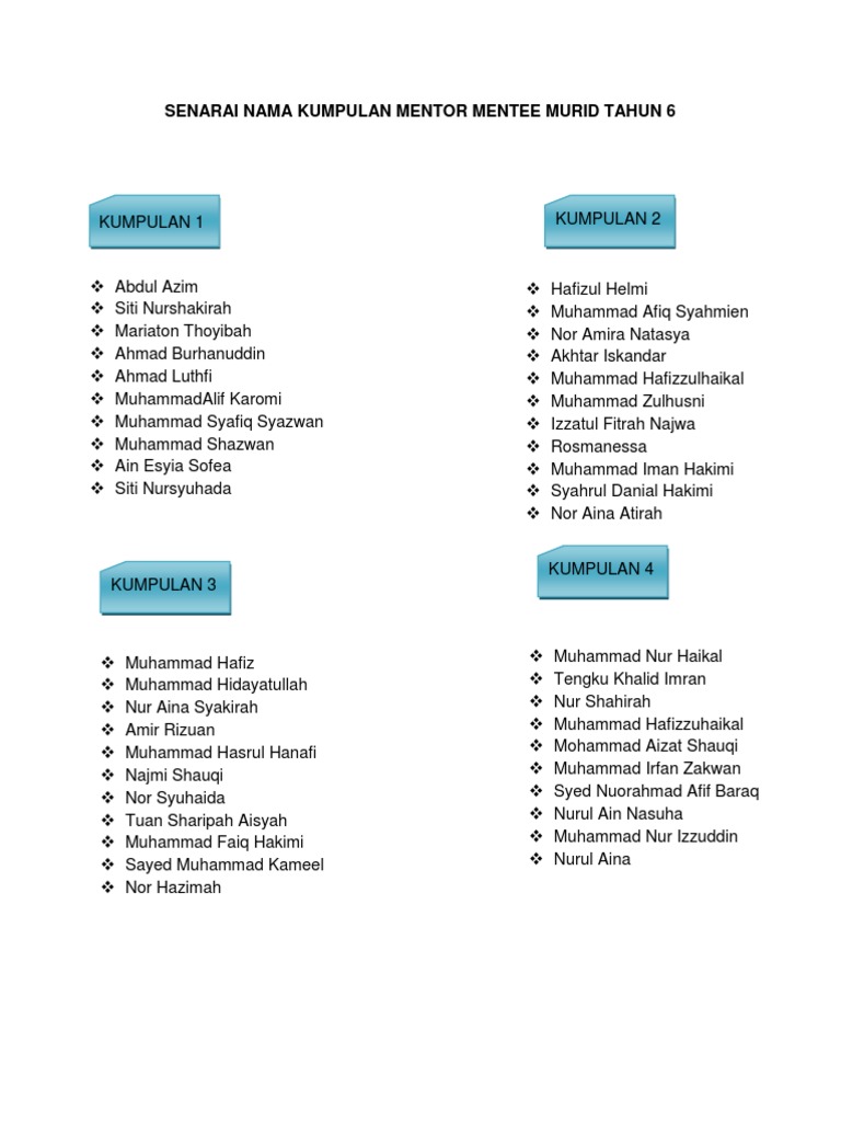 Senarai Nama Kumpulan Mentor Mentee Murid Tahun 6 Pdf