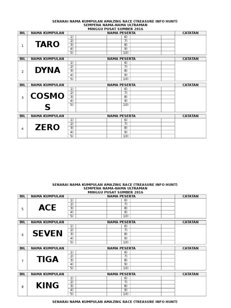 Senarai Nama Kumpulan Amazing Race Pdf